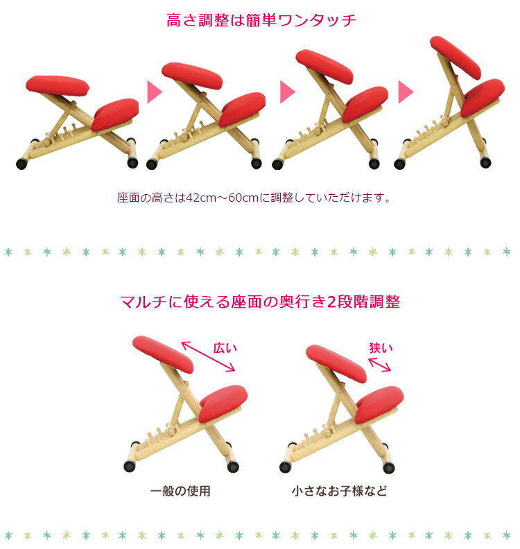 座面の奥行きを2段階調整で子供から大人までマルチにご使用いただけます。