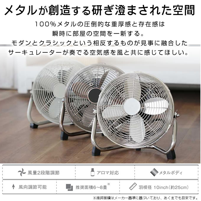 商品詳細 商品名メタルサーキュレーター 10インチ 扇風機 品番:PR-F011 ポイント100%メタルの圧倒的な重厚感と存在感は瞬時に部屋の空間を一新する。