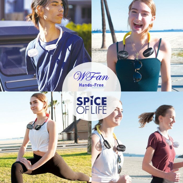 【あす楽 キャッシュレス5%還元対象】P5倍 送料無料 SPICE OF LIFE ハンズフリー おしゃれ 扇風機 首かけ ポータブル W FAN ブラック 携帯用 肩掛け 卓上 USB充電式 風量3段階調節 角度調整 羽根 静音 ダブルファン DF30SS01 スポーツ アウトドア 夏 静か 小型