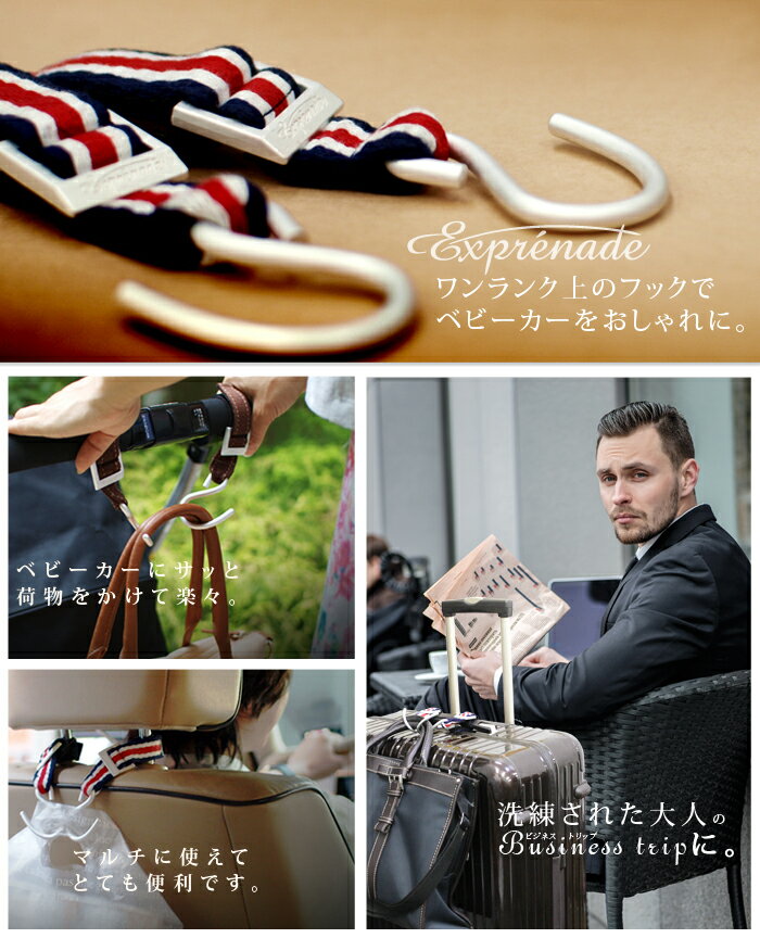 フック部分が亜鉛合金で出来ているので、耐久性が抜群で錆にくい! マジックテープでどんなタイプのベビーカーにも取り付けられ、しっかりママバッグや荷物を固定します☆